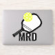 Personalised Monogram Initials Contour Cut Sticker with a Pickleball Paddle and Ball Design available in several sizes for your laptop, water bottle, sticker collection, car, or as favours and gifts for a tennis birthday party.