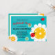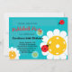 Turquoise Happy Birthday postcard for Pickleball player with cute pickleball ladybugs. RSVP card at the back