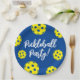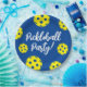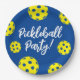 Pickleball Birthday party plates (disposable) . Fun design with gathering with friends and family. Personalise with your text. Blue background and yellow balls. Also great for tournament, club event, match night, celebrations, reunion, BBQ, kids day and more.