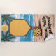 Bounce, Paddle, Laugh Repeat! is the cheerful headline featured at the bottom of this sunny beach towel. A large yellow pickleball paddle stands upright in the sand, with a yellow perforated pickleball resting in front. Two palm trees frame a bright sun rising over blue ocean waves, creating a vibrant tropical scene. This beach towel is perfect for any pickleball club, team, or tournament hosted at a tourist resort or vacation destination. Whether you're gifting a pickleballer for a birthday, celebrating a holiday, or outfitting your coach or fan crew, this product brings stylish, funny, and sporty energy to the court and beach alike.