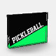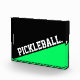 This elegant sporty design features PICKLEBALL text in bold white sporty block letter typography displayed at an upward diagonal slant. The diagonal bottom is vivid bright lime green.