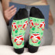 Creative pickleball Christmas holiday socks featuring Mrs. Claus pickleball player pattern for her.