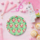 Fun pickleball Christmas holiday party plates featuring Santa Claus pickleball player pattern.