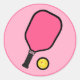 Unique pickleball envelope seals, gift stickers or party favour labels featuring hot pink paddle and yellow ball.