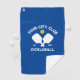 Wick the sweat away with this towel featuring crossed pickleball paddles, a ball and your custom text. Easily change the wording to include your pickleball club name, team name, player name, city/location or any wording your choose. Also change the background colour and font and graphic colours - just click edit/personalise. Makes an awesome gift for your favourite pickleball player, team, pickleball tournament award, and pickleball trip memento.