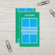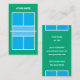 Pickleball coach business card template. Custom sports card for players, trainer, sports coach, pro instructor, club, kids league, tournament, training, clinic, teacher, school, academy, court builder etc. Blue green court blueprint in customisable colours. Top view of pickleball court with lines.