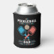 A can cooler for dads who love pickleball. Featuring a graphic of two paddles and a ball. The text reads "My pickleball game is strong... but my Dad game is stronger". A great gift for birthdays, Christmas and Father's Day.