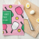 Creative pickleball gift idea featuring hot pink and cool green paddles pattern and quote for pickleball player to place in the kitchen or take to the court.