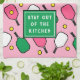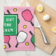 Creative pickleball gift idea featuring hot pink and cool green paddles pattern and quote for pickleball player to place in the kitchen or take to the court.