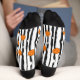 Decked out in black-and-white zebra-esque stripes like a referee who got lost on safari, with bold orange pickleballs bouncing all over like Nana’s opponents trying to keep up with her footwork. The toes and heels are black, because even socks know where the power comes from.