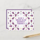 Purple Happy Birthday postcard for Pickleball player with purple and white pickleball pattern. Custom text