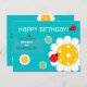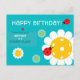 Turquoise Happy Birthday postcard for Pickleball player with cute pickleball ladybugs