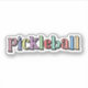 "pickleball" in a colourful, multicolor retro font. The perfect gift for pickleball players.