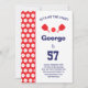 Red and white Pickleball birthday party invitation. Fully customisable. Two crossed pickleball paddles and red pickleball.