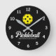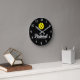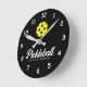 Pickleball lover wall clock with funny quote. Custom round time clock with yellow ball logo and script text. Fun Birthday party gift idea for fan, player, sports coach, dad, mum, wife, husband, teenager etc. Change ball logo and background into any colour. Personalise with your own funny quote or club name. Available in different sizes. Great for office, kitchen, club house, bedroom, living room, restaurant, bar, cafe and other places.