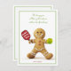 A gingerbread man who’s not just about cookies and icing but also a pickleball pro! This card features our festive friend holding a red pickleball paddle and a green pickleball, with the hilarious pun “Dinkin’ All the Way!” above him. The text reads, “Wishing you a Merry Christmas with a lot of dinking!” – because who doesn’t want to dink their way through the holidays?