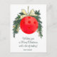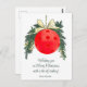 Colourful Christmas pickleball Christmas card with Red Pickleball Bauble, white background. Custom text back and front