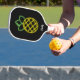 Personalise this fun pickleball paddle name and get ready to play! This paddle is super fun, on a black backgroun and featuring a neon pineapple and space for your name.
