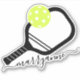 Personalised Name Contour Cut Sticker with Pickleball Paddle and Ball Monogram in a Girly, Feminine, Elegant Calligraphy Script Font is available in several sizes for your laptop, water bottle, sticker collection or as favours and gifts for a tennis birthday party.