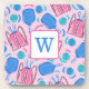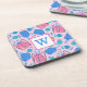 Pickleball Paddles and Balls Pink Preppy Initial Coaster