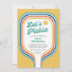 A fun invitation for your next pickleball party. Design features a retro stripe outline of a Pickleball Paddle and the words "Let's Pickle" in a fun font. Easily add all your custom party details. Great for an adult or kid's pickleball birthday party, girl's or guy's pickle gathering or everyday fun. Pickleball - the best sport ever!!