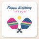 Pickleball Party Personalised Name Custom Square Paper Coaster