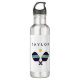 Celebrate your pickleball player or fan with this fun and vibrant personalised name water bottle featuring striped blue, green and yellow pickleball paddles. Text is customisable. Part of a collection from Parcel Studios.