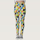 This cute pair of leggings has blue, yellow, green, grey, white and tangerine pickleballs arranged in circles on a white background, simply adorable!