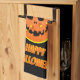 Pickleball pumpkin turned into a happy skeleton jack-o'-lantern. Awesome Halloween-themed pickleball kitchen towels for a pickleball player. Fun orange and black pickleball Halloween towels for your pickleball-loving mum, dad, uncle, aunt, brother, sister, neighbour, grandpa, grandma, husband, wife, friend, or work colleague who won't stop talking about pickleball.