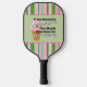 Do you have a pickleball serve that is hard to return, super-fast, and always hits deep right on the baseline? Next time your opponents complain about your killer, totally legal serve tell them - If You Wanted a Soft Serve You Should Have Gone For Ice Cream. One side is a pink strawberry soft-serve ice cream with a lime green pickleball on a pink and green striped pattern. The other side has strawberry soft-serve cones and a pink-on-pink arch. Colourful pickleball paddle for yourself, your pickleball-loving friend, mum, dad, uncle, aunt, brother, sister, neighbour, grandpa, grandma, or work buddy who won't stop talking about pickleball.