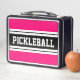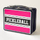 PICKLEBALL Sporty Bold Pink Black White Stripes Metal Lunch Box
