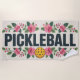 PICKLEBALL is the bold headline centred in this vibrant floral design. Surrounding the text are pink hibiscus-style flowers, green leaves, and red berries arranged symmetrically, creating a cheerful and tropical atmosphere. At the bottom centre, a yellow perforated pickleball adds sporty flair. This beach towel is perfect for any pickleball club, team, or tournament hosted at a tourist resort or vacation destination. Whether you're gifting a pickleballer for a birthday, celebrating a holiday, or outfitting your coach or fan crew, this product blends stylish celebration with athletic pride.