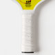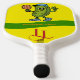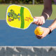 Bring the fun to every match with this cheerful “Pickleball Vibes” paddle design! Featuring an adorable pickle character holding a paddle and flashing a peace sign, this bright yellow design radiates positivity and playfulness. The green wave stripe adds a sporty touch, while the signature monogram at the bottom gives it a stylish finish. Perfect for players who love lighthearted, energetic designs that stand out on the court.