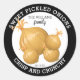 Personalised homemade pickled onion jar round stickers which also can be used for gherkins. Featuring a black border, white text, an image of some onions, and an a template to add who pickled them and the date.