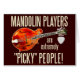 Design features an F-5 mando and says "Mandolin Players are Extremely "Picky" People!" For those not ashamed to wear their passion and a bad pun on their shirt (or display it in one's home/office).