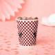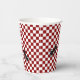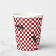 Whimsical paper cups done in a red and white chequered pattern. Graphics of big black ants crawling across the cup adds a fun touch for picnics and cook outs. Matching products are available.
