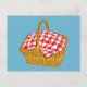 A stylised image of a picnic basket. Imagine the delicious food contained in this cute picnic basket with red and white checkerd cover.