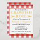 This cute modern picnic tablecloth design features red and black text that is completely customisable to your crawfish, lobster, seafood, or whatever boil you may be having. Celebrate your engagement, graduation, anniversary, birthday, etc, with these cute crawfish, and handwritten script and serif fonts.