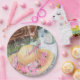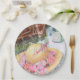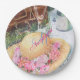 Romantic picnic in the park with sparkling water and glasses, a white lace tablecloth, a brown basket and a beautiful floral laced summer hat. Flowers are a combination of pinks, reds, purples. Custom personalised monogram party paper plates for all occasions. Watercolor design image originates from the designers collection. Enjoy coordinating your party ensemble to express your own Theme. If you want something more particular please contact me at sue.chorney@shaw.ca.