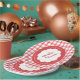 Perfect for birthday party table settings, garden parties, outdoor celebrations, and spring or summer events, this design combines traditional picnic gingham style with a soft scalloped frame that highlights the birthday number or custom message in the centre. The red and white colour palette creates a bright, cohesive party aesthetic that coordinates easily with matching decor and tableware.