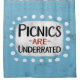"Picnics Are Underrated" is a fun and chunky text design featuring a white accent shape surrounded by cute white polka dots.