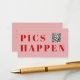 Modern soft blush, red bold font, wedding "Pics Happen" QR Code, Photo-Gallery-Website, QR-Code, Enclosure Card. Personalized with your names, photo-gallery-website, scannable QR code and message to keep your friends and family up to date about your upcoming special day.