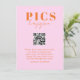 Modern blush, pink orange, wedding "Pics happen!" Card with couple's name,