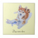 This a very cute sheba Inu puppy is part of my part of my puppy portrait collection. Her name is Sushi and she looks so appealing and adorable as she rests her paw on her pink piggy toy. Her little sheba puppy expression looks as if she’s trying to entice her owner to play and that’s why I titled this puppy portrait painting “Squish Mr. Piggy!” I think she this little sheba pup looks really sweet on this art tile and will make a lovely gift for your friends and family, especially the ones who love cute puppies and Sheba inu puppies definatly have the cuteness factor. But maybe you just want to spoil yourself with this puppy tile as a very special treat. This paticular tile has a neutral coloured background. I've made this tile a template object so that you can add the name of a special sheba inu that is, or was, known to you. I painted Sushi the sheba Inu‘s portrait in watercolor.