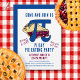 Fun Pie Eating PI DAY Party Invitation with CUSTOMIZABLE TEXT to celebrate March 14th. The design shows the Pi symbol with a generous helping of cherry pie through the middle. Surely a heavenly combination for Pi Day. Update with your party details and send out to all your friends. Also in black/lime.