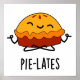 Pie-lates Funny Food Pie Pun features a cute pie in a meditation pose. Perfect pun gift for family and friends who love cute food pie puns.