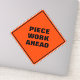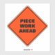Funny classic orange diamond caution road sign warns of piece work ahead in a thick black sans serif font. Perfect for someone working on a production line or who does a repetitive job.