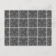 This design was created by duplicating and flipping a mirrored pattern of geometric shapes (primarily triangles) in various shades of grey and black fitted together resembling a mosaic or a work of stain-glass over this original image. The images was then laid out in a grid fashion with no distinct border other than the one preexisting in the design.