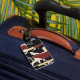 I was happy with the acrylic tag but it came with a thin leather strap to attach the tag to luggage (like a cat collar). I replaced the strap with a metal ring off of a key ring as the leather strap would come undone or break easily as luggage is sometimes handled without much care by airlines. Printing is great. Colours and positioning of the design I put on the tag were perfect. Very pleased.