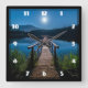 Pier at Night under a Full Moon Square Wall Clock
